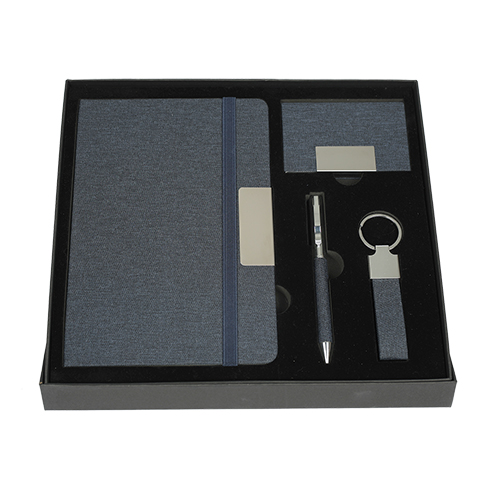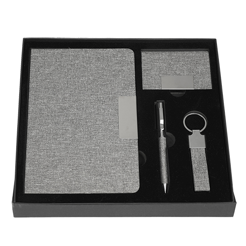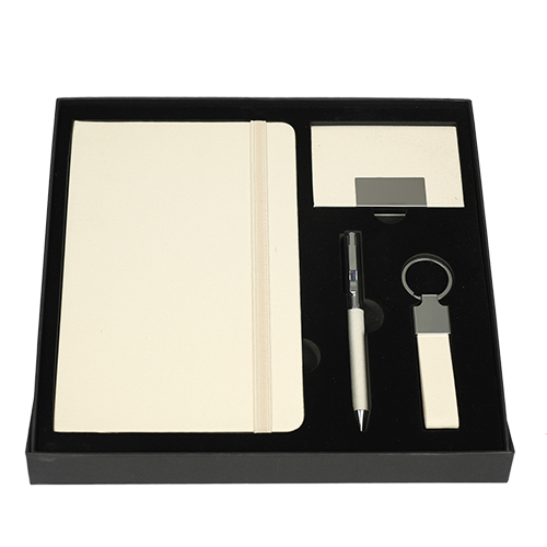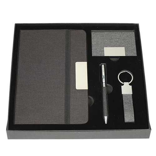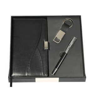 Notebook A6 ,Stylo Métal ,Porte clés cuir Marquage: Numérique-Gravure