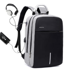 SAC A DOS MULTI-USAGES Dim: 43 x 30 x 14cm avec Sortie USB sur le côté vous permet de ne pas tenir toujours la batterie externe au main. sécurisé par un cadenas à code. Ce sac à distingue par une ouverture pour vos écouteurs ou casque audio